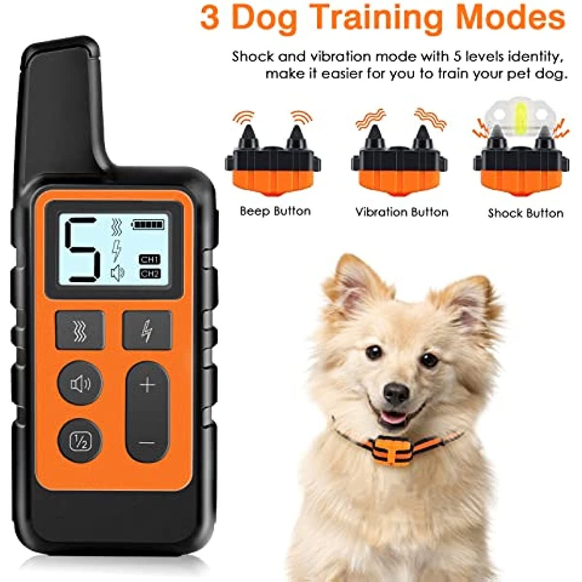 Dog Training Collar; Waterproof Shock Collars for Dog with Remote Range 1640 ft; 3 Training Modes; Beep; Vibration and Shock; Rechargeable Electric Do Dog Training Collar; Waterproof Shock Collars for Dog with Remote Range 1640 ft; 3 Training Modes; Beep; Vibration and Shock; Rechargeable Electric Do Dog Training Collar; Waterproof Shock Collars for Dog with Remote Range 1640 ft; 3 Training Modes; Beep; Vibration and Shock; Rechargeable Electric Do