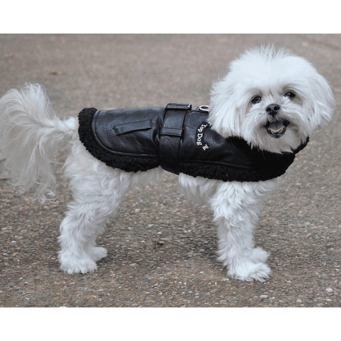 Give your pup an elegant bomber style harness coat with Doggie Design's Top Dog Flight Coat in Black.