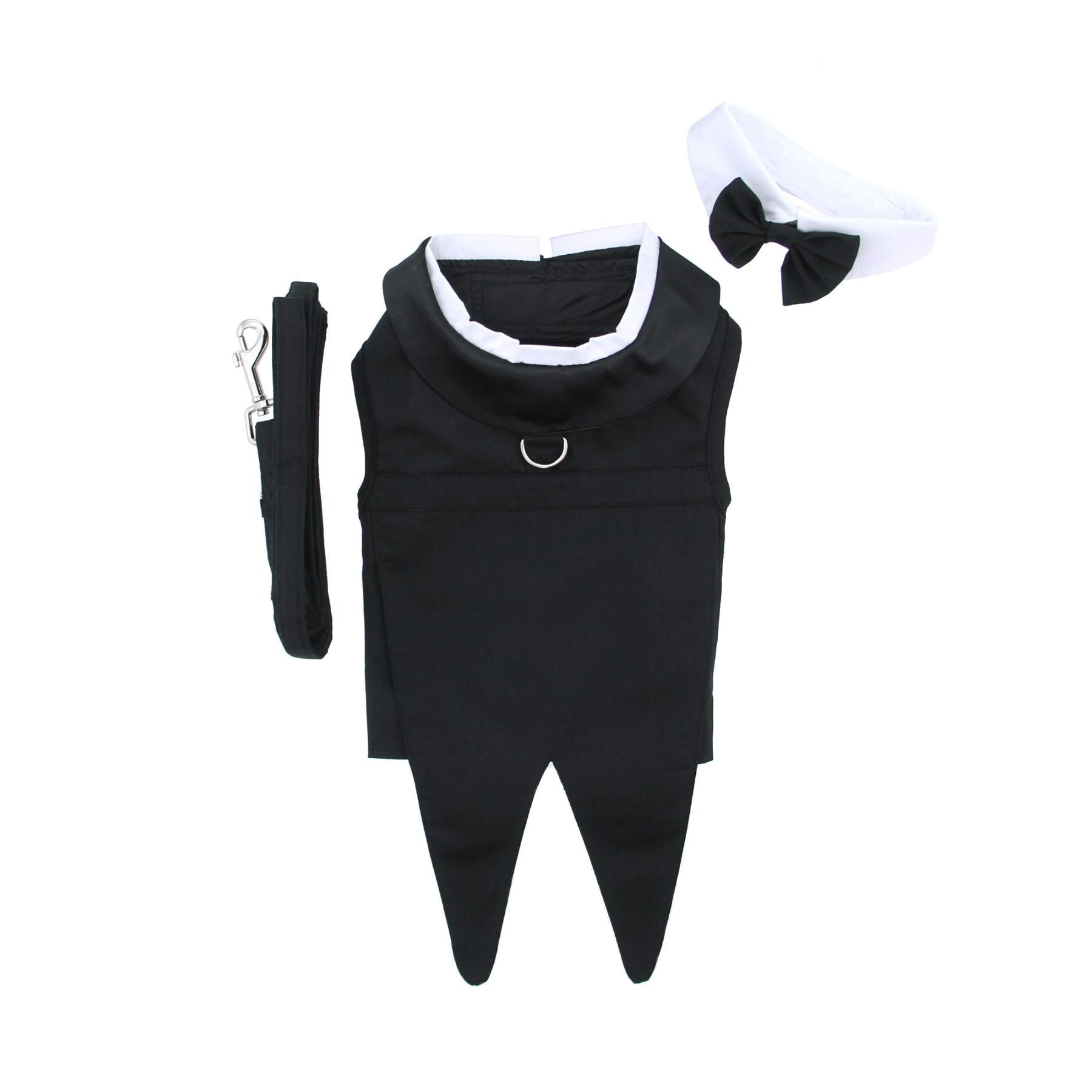 Black Dog Harness Tuxedo w/Tails, Bow Tie, and Cotton Collar